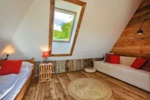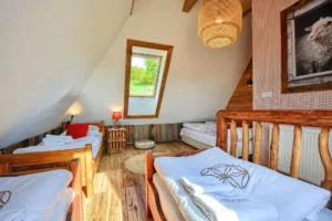 Gościniec Rabe to ogromna przestrzeń, abyś mógł odpocząć od codzienności. Do Twojej dyspozycji oddajemy dom oraz chatę z bali usytuowane w miejscu dawnej zagrody owczarskiej.