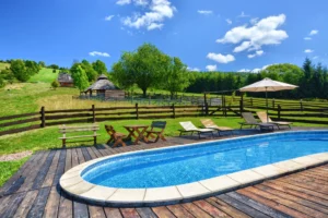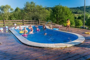 Jesteśmy jednym z nielicznych miejsc, które posiadają prawdziwy zewnętrzny basen z podgrzewaną wodą.